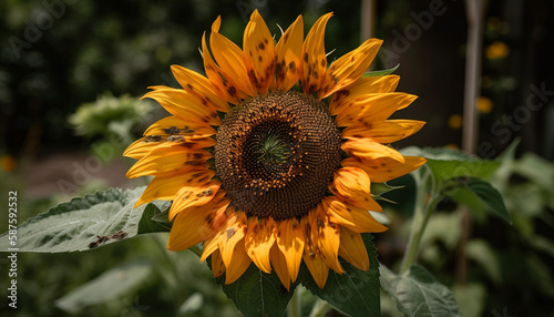 © Jeronimo Ramos, Fototapeta premium Yellow sunflower shines in vibrant summer meadow generated by AI