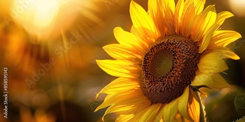 © Khoirul, Fototapeta premium Yellow sunflowers bloom beautifully in spring nature botanical flower background. Sunflower seed farming.