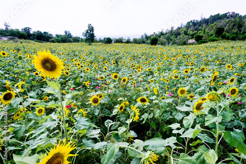 Obraz premium Yellow sunflowers grow in the field