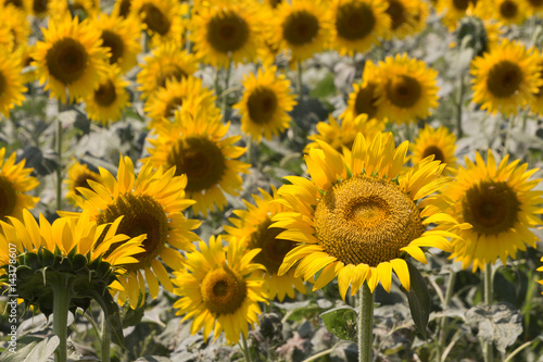 Obraz premium yellow sunflowers in the farm