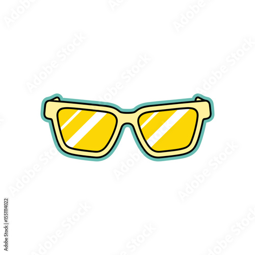 © Elina, Fototapeta premium Yellow sunglasses with a bold design on a white background, Eyewear & Headwear