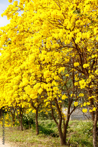 © wittybear, Naklejka premium Yellow tabebuia flower blossom