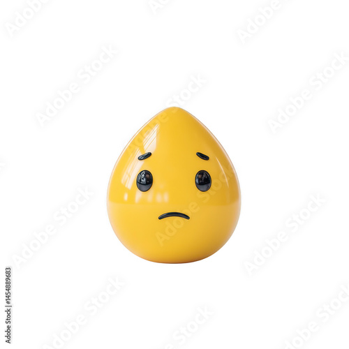 © Prichachai, Fototapeta premium Yellow, teardrop shaped emoticon with sad expression, featuring large eyes and small frown, isolated on transparency background