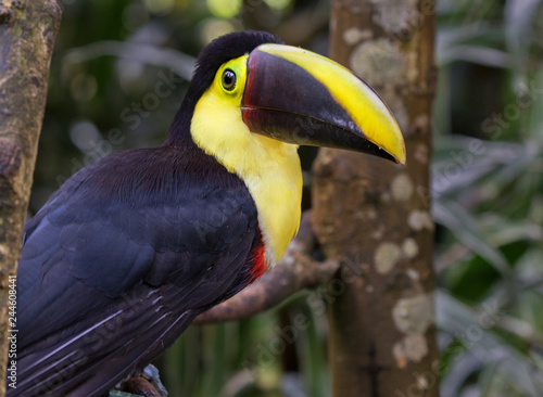 Naklejka premium Yellow-throated toucan (Ramphastos ambiguus), portrait in the rain forest,...
