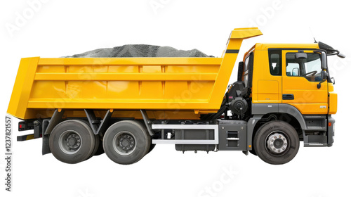 © PerfectPhoto, Fototapeta premium Yellow tipper truck carrying gravel on transparent background