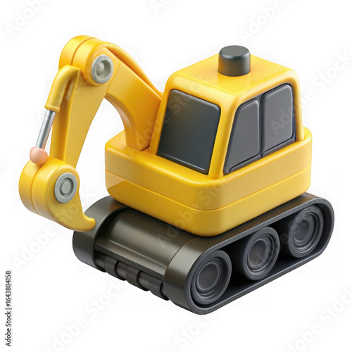 Fototapeta premium Yellow toy excavator machine isolated on transparent background