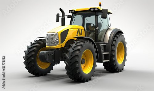Fototapeta premium Yellow tractor on white background. Created using generative AI tools