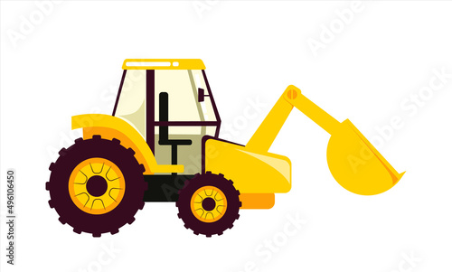 © Ирина Тюжина, Fototapeta premium Yellow tractor with bucket. Vector illustration in cartoon flat style isolated on white background