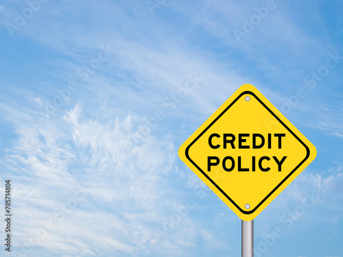 © bankrx, Naklejka premium Yellow transportation sign with word credit policy on blue color sky background