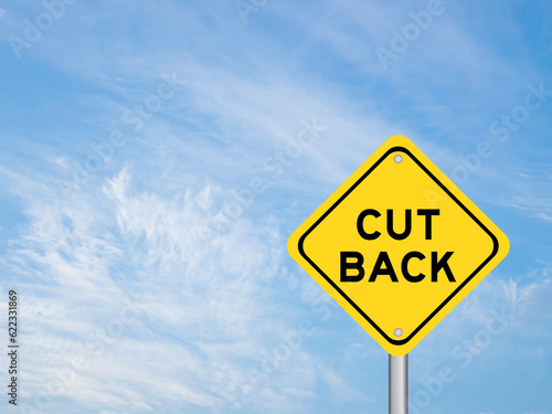 Fototapeta premium Yellow transportation sign with word cut back on blue color sky background