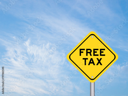 © bankrx, Naklejka premium Yellow transportation sign with word free tax on blue color sky background