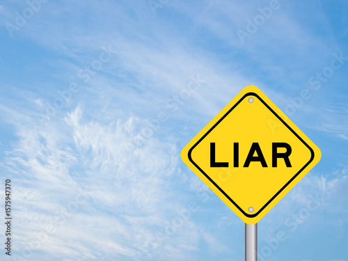 © bankrx, Naklejka premium Yellow transportation sign with word liar on blue color sky background