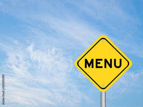 © bankrx, Naklejka premium Yellow transportation sign with word menu on blue color sky background