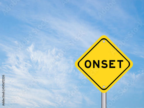 Fototapeta premium Yellow transportation sign with word onset on blue color sky background