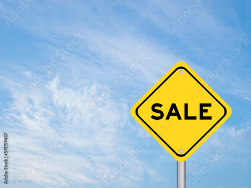 © bankrx, Fototapeta premium Yellow transportation sign with word sale on blue color sky background