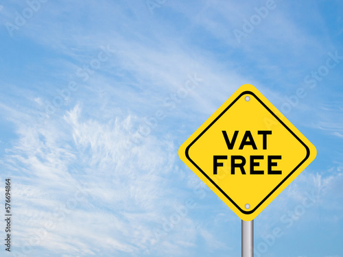 Fototapeta premium Yellow transportation sign with word vat free on blue color sky background