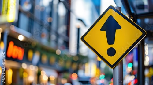 © Jolin, Fototapeta premium Yellow triangle traffic sign with black exclamation mark symbolizing police warning, clear and sharp with ample copy space for text or design.