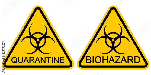 Obraz premium Yellow triangular sign warning quarantine SARS COVID 19 coronavirus, vector...