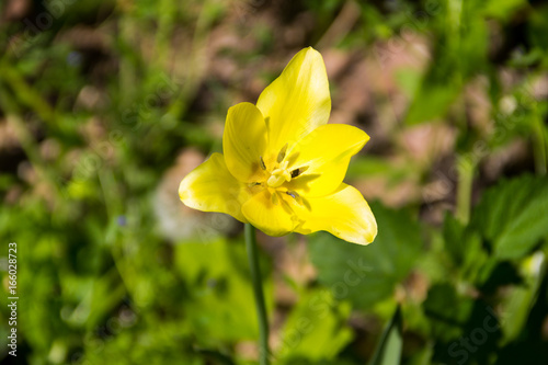 Fototapeta premium Yellow tulips on flowerbed in garden