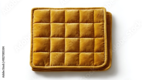 Obraz premium Yellow velvet quilted fabric cushion creating a soft texture, warm color aesthetic, and comfortable home decor element on white background with copy space