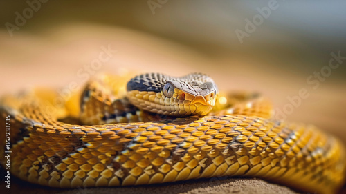 © Miry Haval, Fototapeta premium Yellow viper crawling dangerous and spooky snake, AI Generative