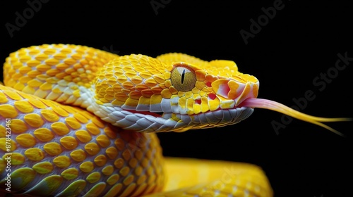 © Ariep, Obraz premium Yellow Viper with a Forked Tongue