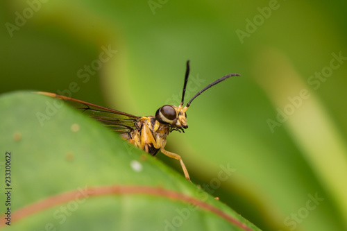 © alenthien, Fototapeta premium Yellow wasp on a green leaf (selective Focus)