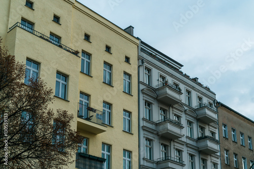 Fototapeta premium yellow, white and brown houses in a row