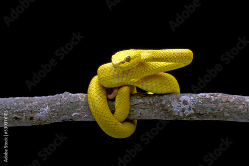 © DS light photography, Obraz premium Yellow white-lipped pit viper in black background