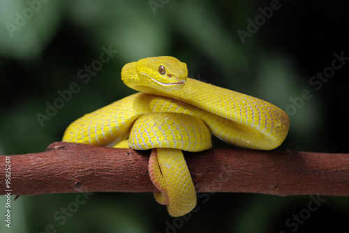 © Agus Gatam, Fototapeta premium Yellow White-lipped Pit Viper (Trimeresurus insularis)