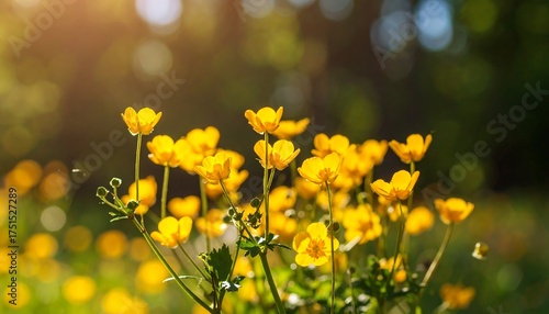 © Dragon, Obraz premium Yellow wildflowers bathed in sunlight
