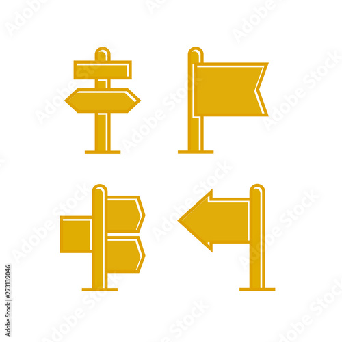 Fototapeta premium yellow wooden signpost and signage icons