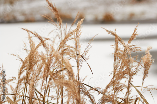 © Алексей Якунин, Fototapeta premium Yellowed autumn grass close up