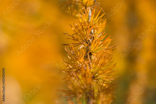 Fototapeta premium Yellowed larch on a bright autumn day