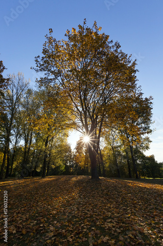 Obraz premium yellowed maple trees in autumn