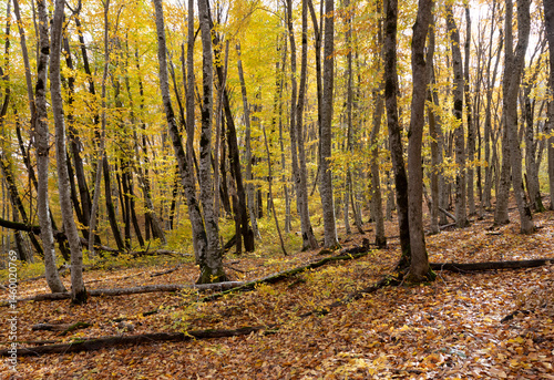 Obraz premium yellowing forest, the beginning of the autumn period in nature, views of the...