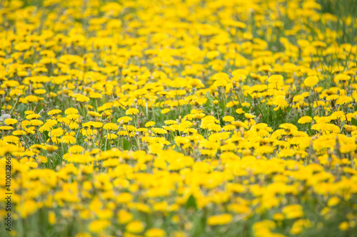 © Ilya, Obraz premium Yelow Dandelion. Bright positive background.