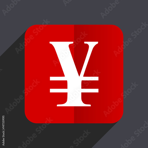© Alex White, Fototapeta premium Yen flat design white and red vector web icon on gray background with shadow in eps10.