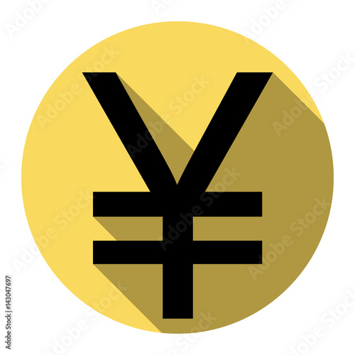 Obraz premium Yen sign. Vector. Flat black icon with flat shadow on royal yellow circle...