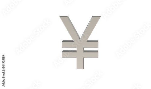 Fototapeta premium Yen symbol on white background, china yuan renminbi, CNY, Currency symbol of the people's republic of China in metallic Silver