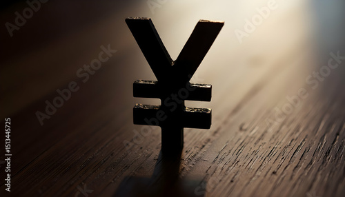Fototapeta premium Yen Symbol Silhouette on Wooden Surface Represents Currency and Finance