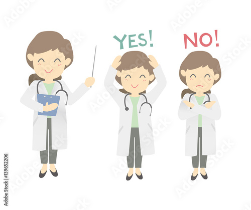 Obraz premium 医師の女性がyes,noのサインを出しているベクターイラスト