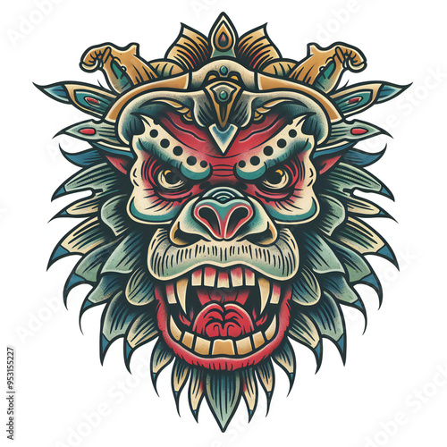© SRIWALUYO, Fototapeta premium Yeti head very simple traditional tattoo flash styles illustration