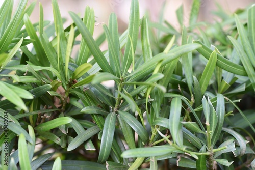 © tamu, Obraz premium Yew plum pine (Podocarpus macrophyllus) hedge / Podocarpaceae evergreen conifers.