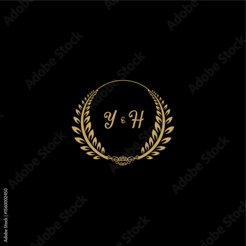 © desi, Fototapeta premium YH beautiful feminine and elegant wedding monogram initial logo with circle floral gold
