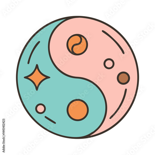 Fototapeta premium Yin yang symbol with cosmic elements in pastel colors