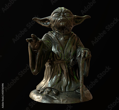© Roman, Naklejka premium Yoda figurine 3d rendering on black background