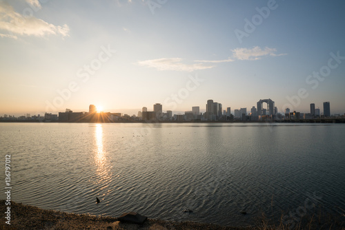 Fototapeta premium Yodo river and Umeda morning view,Osaka,Japan