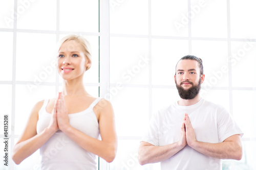 © Friends Stock, Fototapeta premium Yoga concept with young woman and man