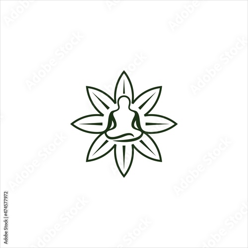 © Najwa, Obraz premium yoga logo vector template leaf people